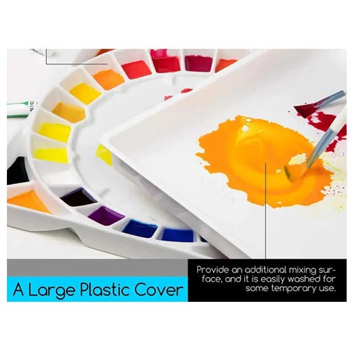 Gemakkelijk schoon te maken eco-vriendelijk keramisch porselein palet met 32 extra diepe vakjes en een deksel. Extra groot! (31,8 x 31,8 cm) Het materiaal is is erg glad en wit waardoor de ware tint van het pigment goed zichtbaar is. Geschikt voor Acrylverf, zoals bijvoorbeeld Amsterdam of Galeria, Aquarelverf , Gouache , ecoline of inkt zoals Amsterdam acrylinkt en Winsor & Newton inkt.