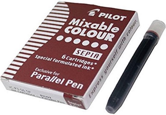 een set van zes sepia-kleurige inktcartridges, speciaal ontworpen voor de Pilot Parallel Pen. Deze mixbare inkt is ideaal voor kalligrafie en stelt je in staat om vloeiende kleurverlopen te creëren door verschillende kleuren te combineren. De cartridges zijn eenvoudig te installeren en zorgen voor een consistente inkttoevoer, wat ze geschikt maakt voor zowel beginners als ervaren kalligrafen.