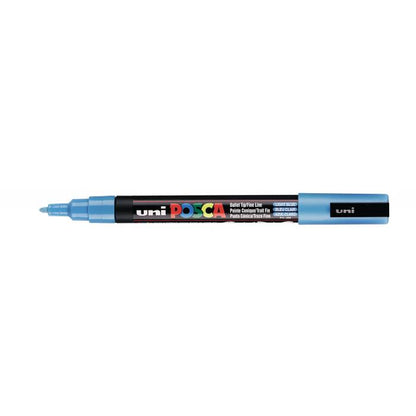 De Posca verf stift PC3M is een verfstift met een fijne punt, alleen niet zo heel fijn als de PC-1MR 0.7 mm (fineliner) en de PC1MC met conische punt. De punt van de UNI posca PC3M acryl marker is een beetje rond. Deze verf marker is geschikt voor lijnen, maar iets minder geschikt voor vlakken, dan zouden de grotere posca’s (Posca PC-5M, Posca PC-8K, Posca PC-7K of Posca PC-17K) meer geschikt zijn. Nadat je goed geschud hebt, kan je de stift met de punt enkele keren indrukken zodat de punt zich vult met verf. Over het algemeen blijft de verfstift dan ook tijdens gebruik zeer goed doorlopen. Zelfs als deze enkele dagen of soms weken ongebruikt in een la ligt. Het beste kan je paint markers liggend bewaren.