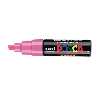 De Posca acryl PC-8K 8 mm breed is een verfstift met een wat grotere beitelpunt, even dik als de PC-8M, maar deze acryl markerpunt is dus rechthoekig. Deze verf marker is geschikt voor lijnen ook voor vlakken. Nadat je goed geschud hebt, kan je de stift met de punt enkele keren indrukken zodat de punt zich vult met verf. Over het algemeen blijft de verfstift dan ook tijdens gebruik zeer goed doorlopen. Zelfs als deze enkele dagen of soms weken ongebruikt in een la ligt. Het beste kan je paint markers liggend bewaren.