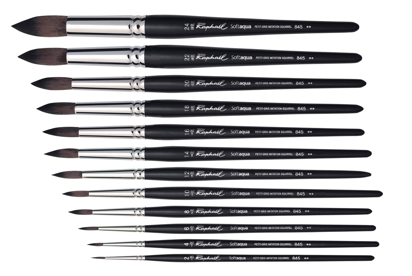 Raphael penseel aquarelverf 845.22 softaqua, soepele veerkrachtige syntetische haren met zeer goede absorptie. Geschikt voor lijnen (fijne punt) en vlakken, voor lange toepassingen zonder opnieuw verf op te nemen.