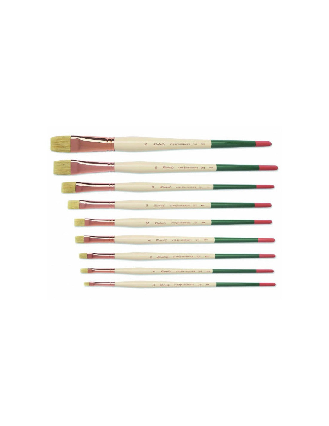 Hoogwaardig plat penseel met lange haren van natuurlijke en synthetische vezels. Ideaal voor olie- en acrylverf, met uitstekende verfopname en veerkracht. Perfect voor brede, expressieve penseelstreken in impressionistische stijl.
