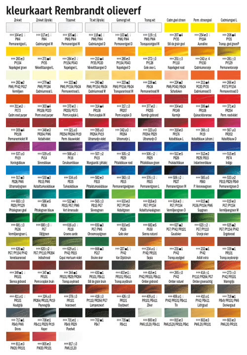 - 19 tubes 15 ml Rembrandt olieverf (254, 284, 285, 311, 377, 318, 568, 506, 517, 530, 576, 633, 615, 629, 227, 411, 409, 735)