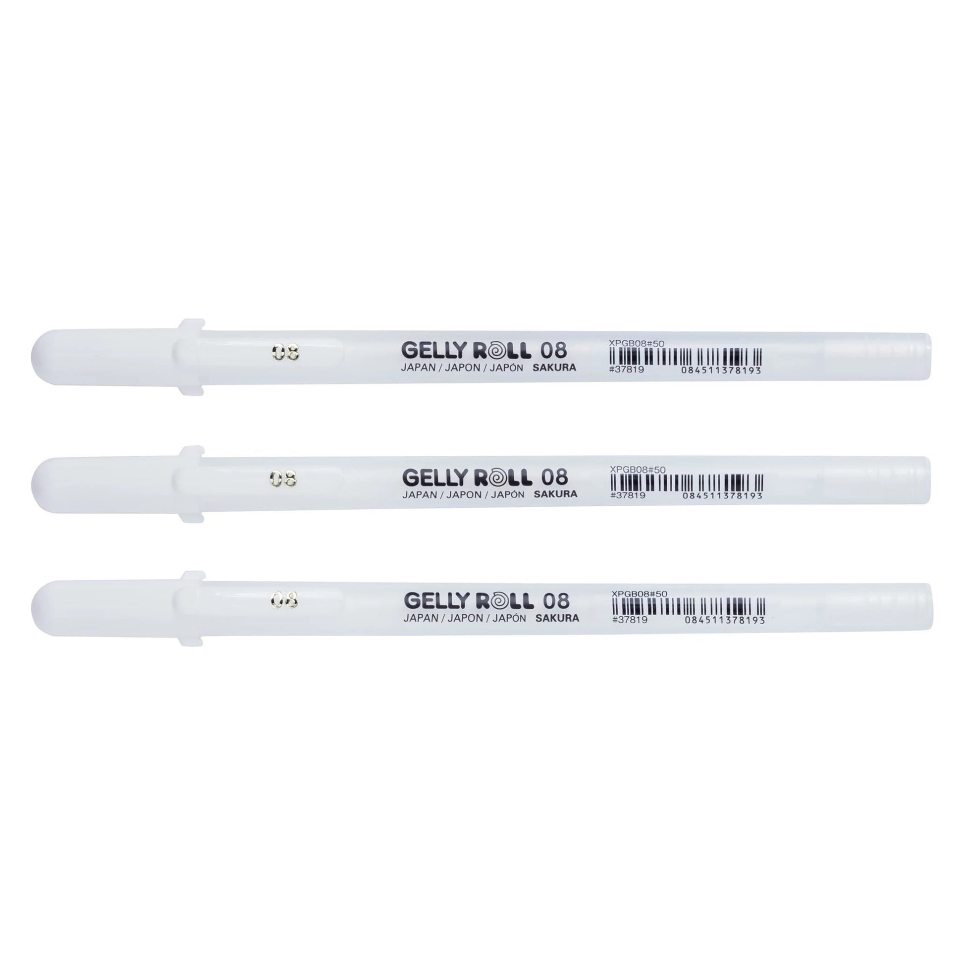 0,4 mm nr. 08 set 3 x wit. Gelly Roll gelpen van Sakura. Sakura ken je als het bedrijf achter de micron fineliners. Nu hebben ze een nieuwe fineliner ontwikkeld. De gellyroll. Wij zijn enthousiast. Goed dekkende gel pennen om kaarten mee te maken, highlights aan te brengen en ontwerpen mee te maken. Dekt goed en rolt lekker over het papier.